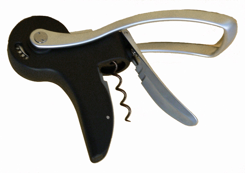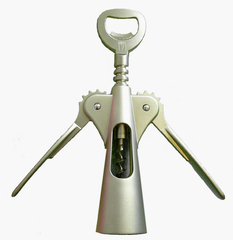 Champagne Set, composto da pinza stappa spumante cromato, tappo stopper cromato e termometro per vino.