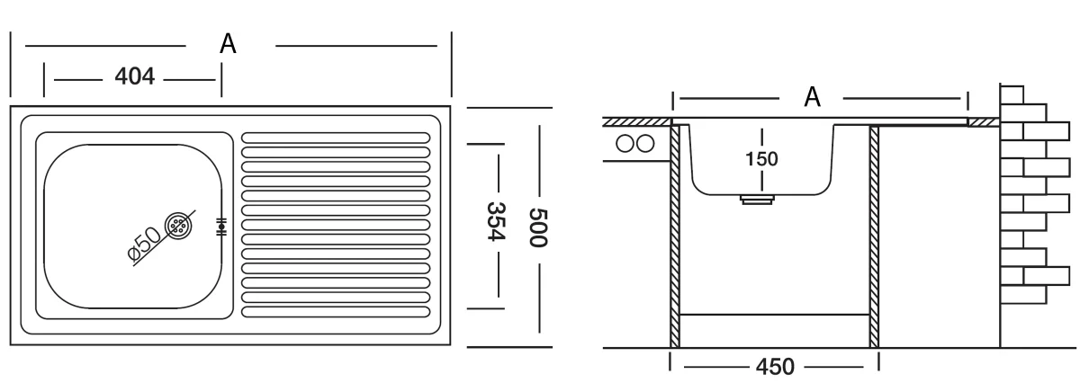 Lavello cucina in acciaio inox ad appoggio da 90 cm con bordino posteriore 1 vasca a sinistra con gocciolatoio a destra