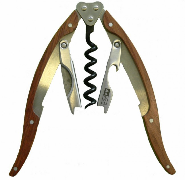 Levatappi Pegasus a due leve con manico in legno. Tagliacapsule e levatappi a corona.